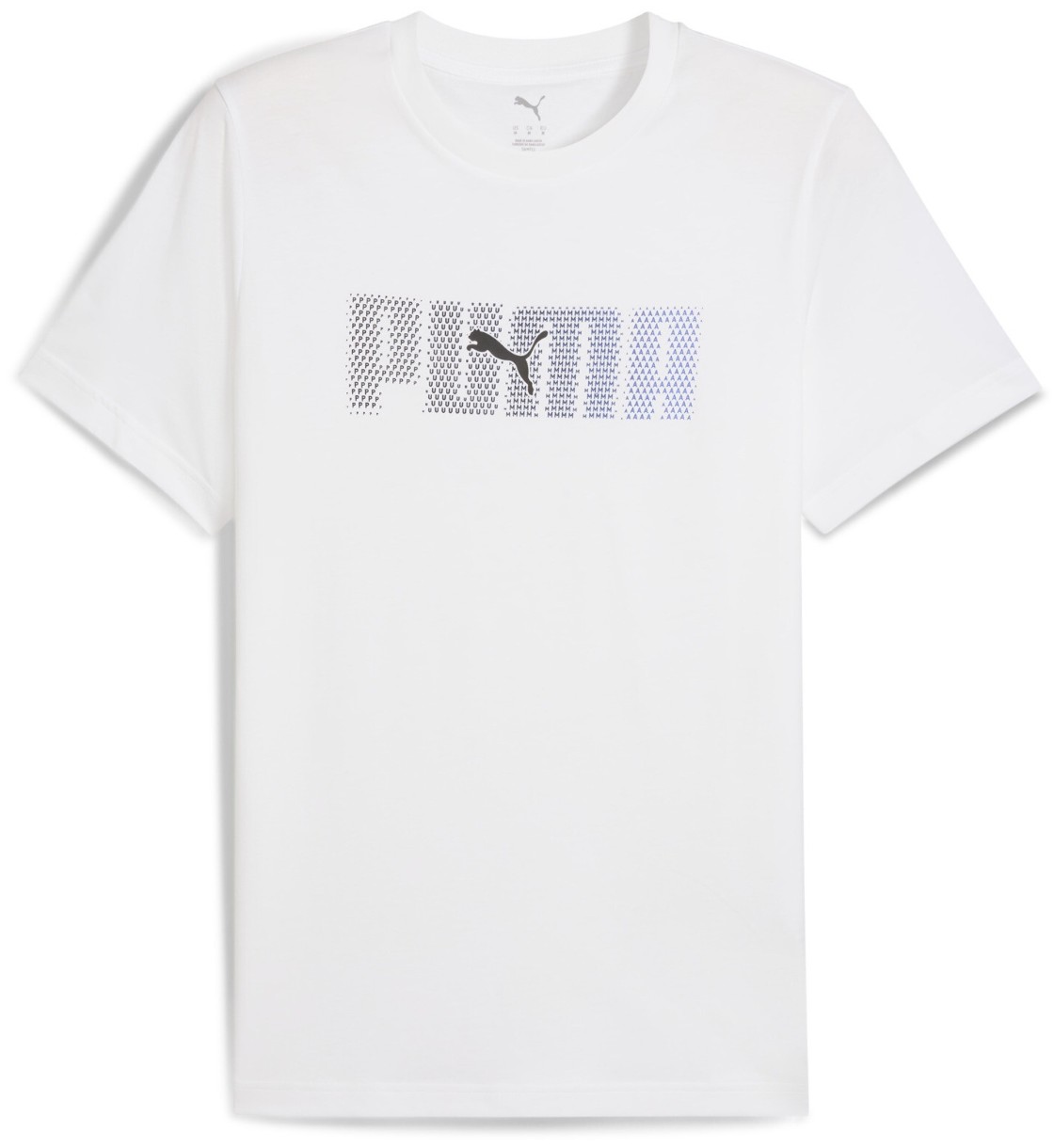 Классический круглый вырез делает образ универсальным, а графический принт с логотипами PUMA на груди добавляет динамики и визуальной выразительности. Эта модель легко впишется в любой повседневный гардероб - её можно носить с джинсами, шортами или спортивными штанами.