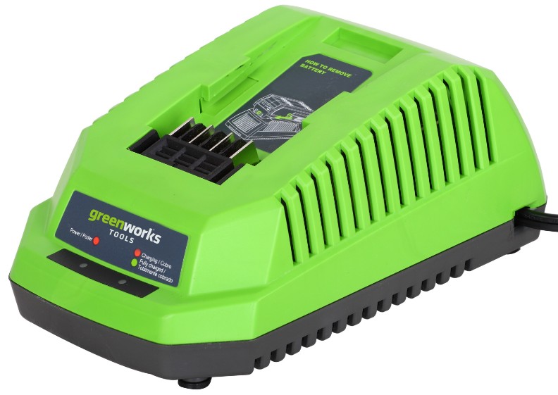 Зарядное устройство Greenworks G40UC применяется для зарядки аккумуляторов G-MAX напряжением 40 В и силой тока 2 А∙ч, 3 А∙ч и 4 А∙ч. Среднее время зарядки аккумуляторов: 2 А∙ч — 60 минут; 4 А∙ч — 120 минут.