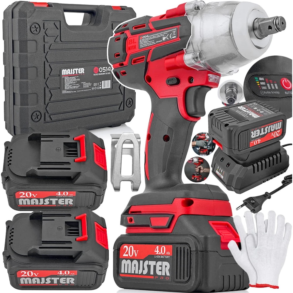 Majster Polska MP0514 — это аккумуляторный ударный гайковерт с бесщеточным двигателем, предназначенный для работ по закручиванию/откручиванию гаек и болтов, например, при обслуживании автомобилей.