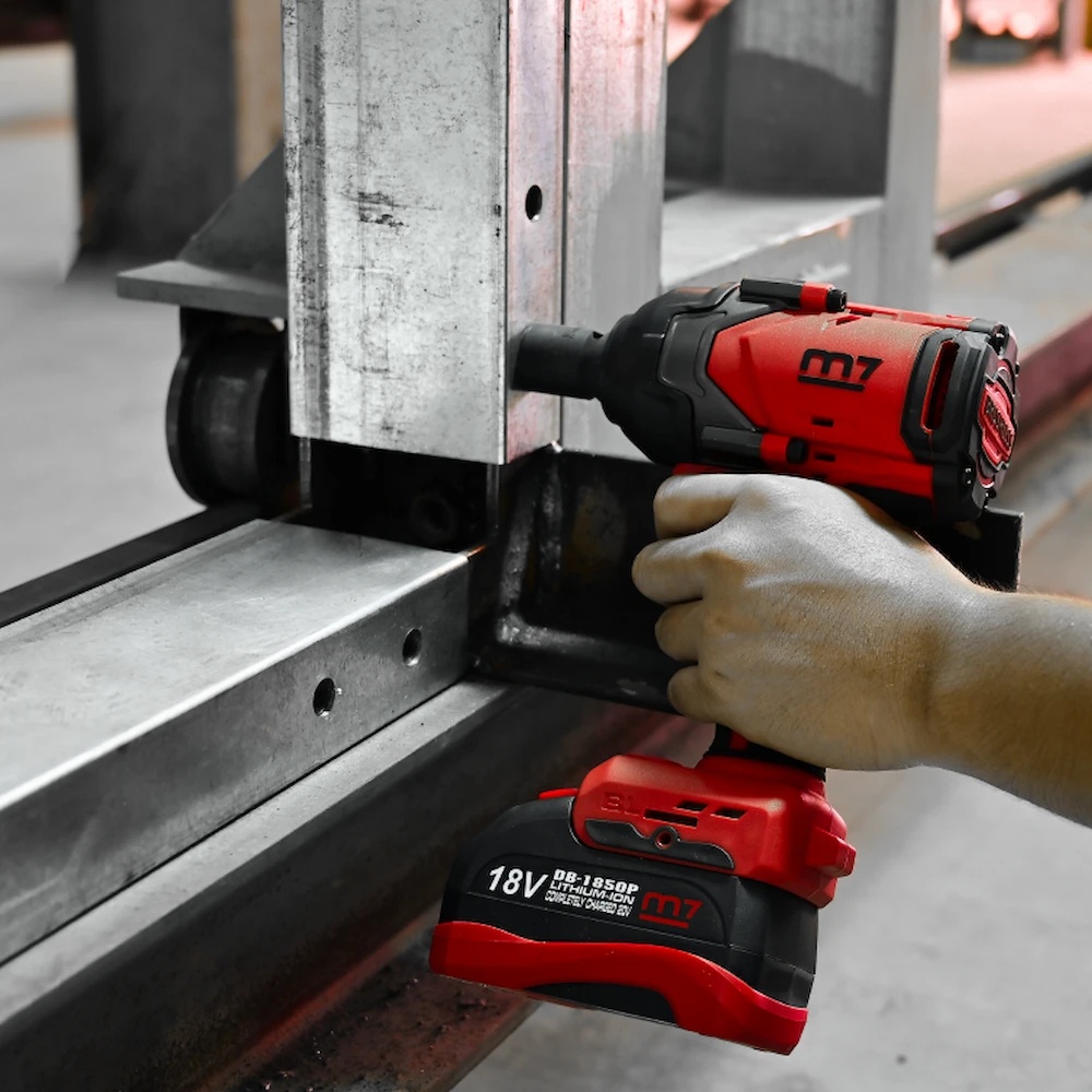 Гайковёрт оснащён бесщёточным двигателем и имеет соответствующую маркировку BRUSHLESS MOTOR, которая означает электронную коммутацию управления двигателем, а скоростью вращения двигателя управляют датчики Холла и контроллер. Преимуществом бесщёточных двигателей являются искробезопасность, повышенный КПД (до 50%) и, как следствие, увеличенный рабочий ресурс.
