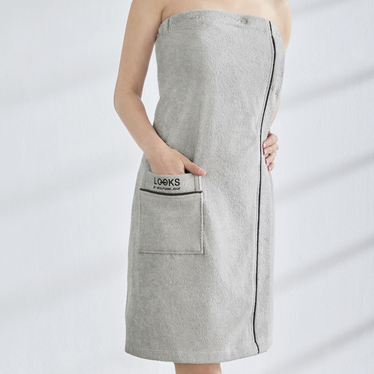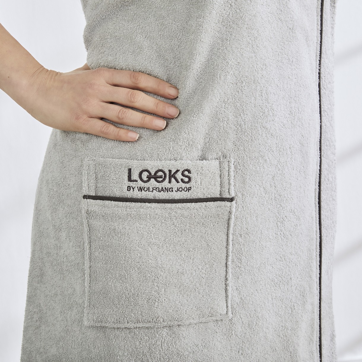 Практичное и мягкое: это высококачественное махровое полотенце от LOOKS by Wolfgang Joop станет практичным спутником в ванной, на пляже или в сауне. Благодаря чистому хлопковому материалу он особенно мягкий и удобный в носке. Особая и практичная изюминка – вшитый боковой карман, в который можно положить все важные вещи. Красивый дизайн дополняется элегантным логотипом LOOKS by Wolfgang Joop.