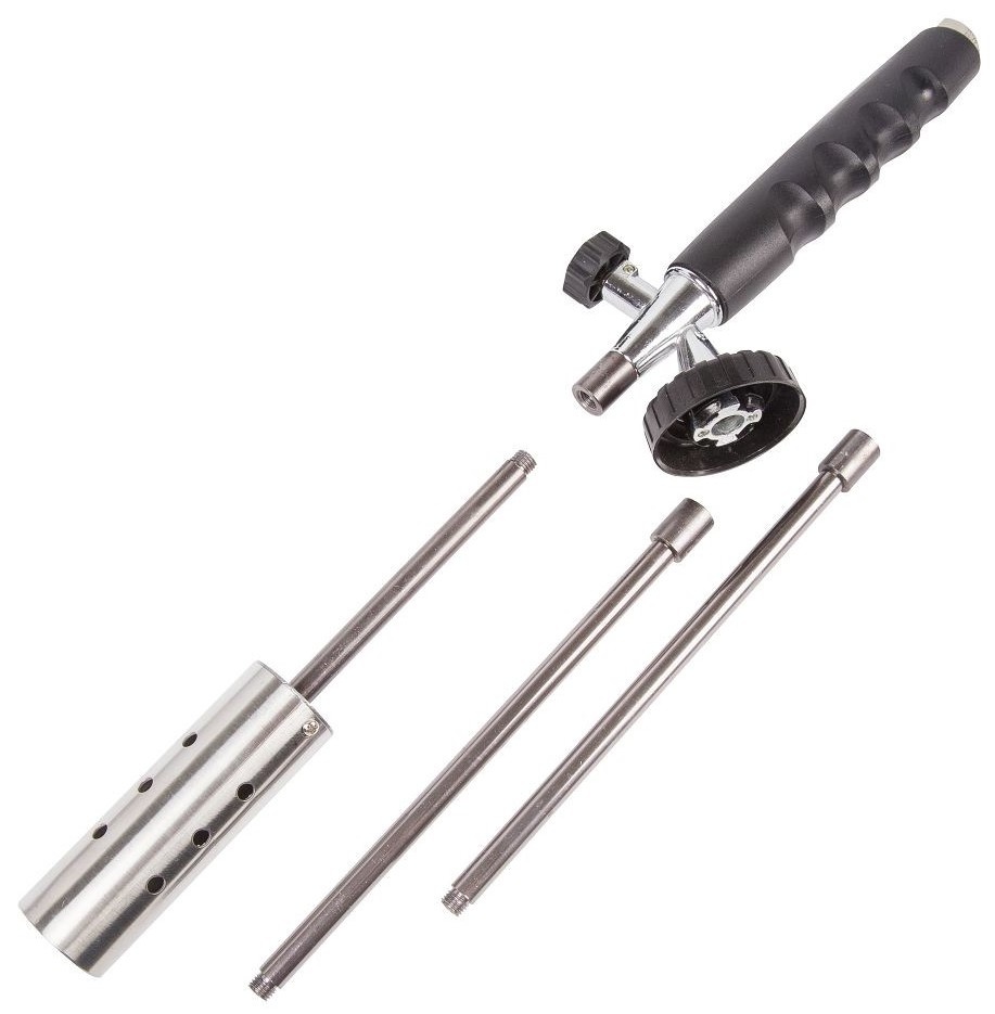 Газовая горелка-насадка REXANT GT-21. Горелка с широким соплом, повышенной мощностью и уникальной конструкцией, позволяющей выбрать необходимую для работы длину из трех вариантов — 395 мм, 590 мм и 785 мм. Отлично подойдет для пользователей, которые нуждаются в приложении максимальной энергии на обрабатываемый участок, который может находиться на удалении, куда не дотянется любая стандартная горелка. Пластиковая рукоять в холодное время года будет приятнее удержания обычным способом «за баллон». Может использоваться для работы с термоусаживаемыми трубками, перчатками, муфтами; для плавления и сварки изделий из пластиков и стекла; удаления краски; обработки поверхностей на производстве и в лабораторных условиях; для разморозки замков, водопроводных труб, продуктов; для копчения продуктов или карамелизации десертов; для работ в саду и огороде, для быстрого и экологичного поджига дров, угля. Одним из главных мест применения будут камины. Также удобно горелку REXANT GT-21 использовать для уничтожения сорняков на тротуарах и садовых дорожках.