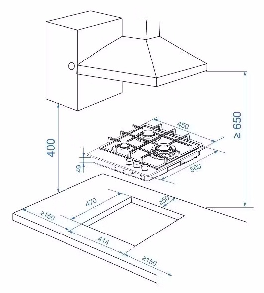 Размеры для встраивания (ШхГ)41.4x47 см