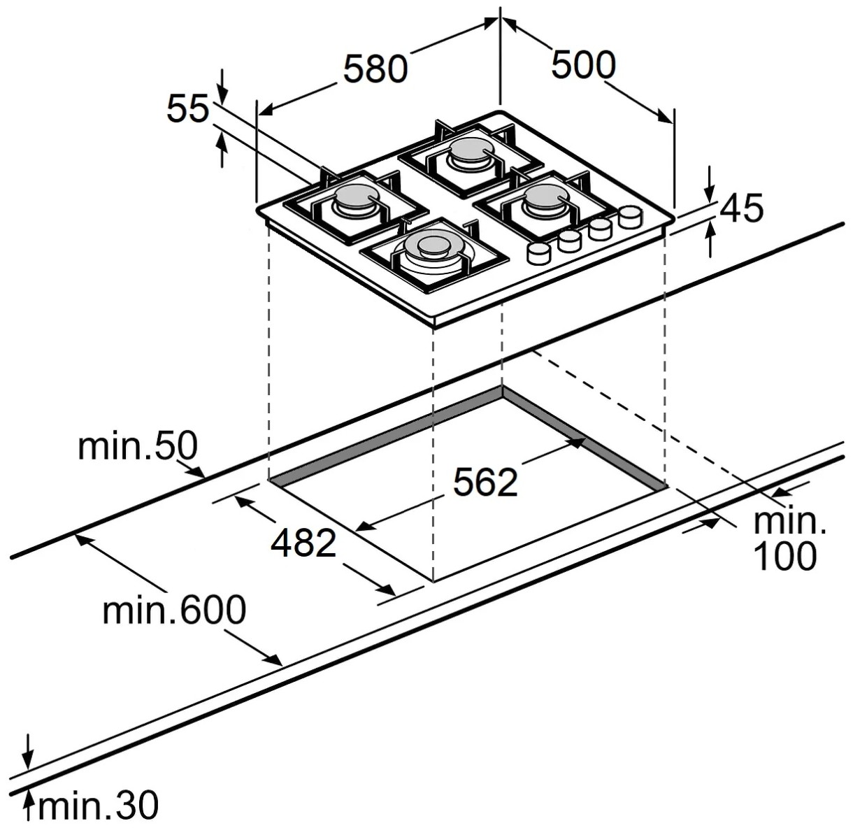 Размеры для встраивания (ШхГ)56.2x48.2 см