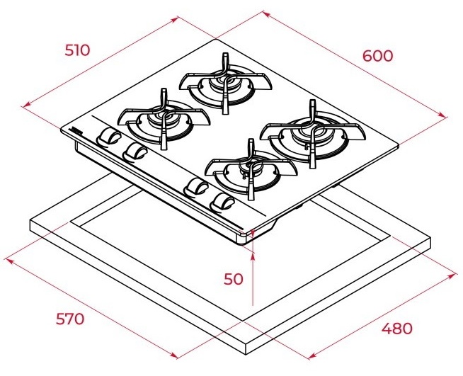 Размеры для встраивания (ШхГ)57x48 см