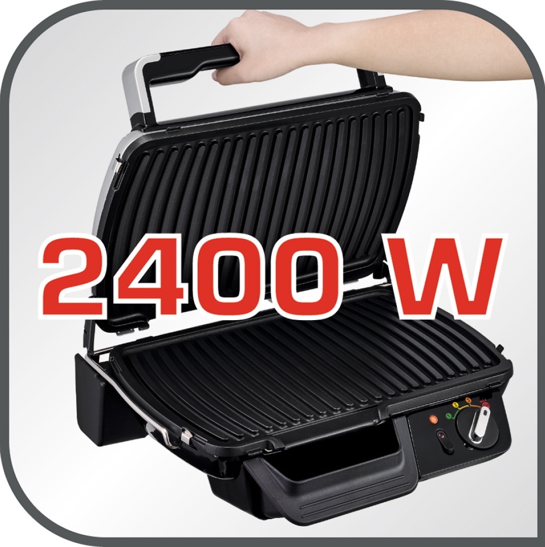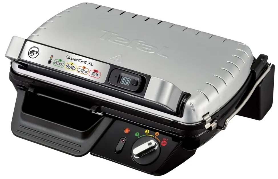 Мощная модель с интуитивно простым управлением. Благодаря металлическому корпусу и литым рабочим пластинам Tefal Supergrill XL GC461B34 отличает высокая надежность и долговечность. Настольный контактный гриль одним поворотом ручки легко настраивается на приготовление овощей, панини, мяса и рыбы.