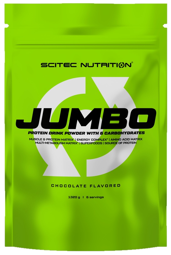 Jumbo, верный своему названию, помогает тем, кто хочет набрать массу, легче достичь избытка калорий благодаря большим порциям. Он содержит 135 г углеводов и 53 г белка на порцию, что значительно увеличивает количество макроэлементов, потребляемых в день, и, следовательно, количество потребляемых ежедневно калорий.