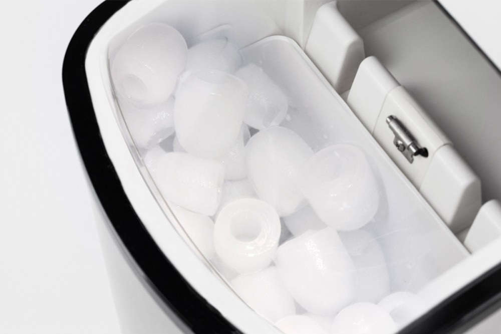Наблюдать за приготовлением льда можно через специальное прозрачное окошко в крышке прибора. Данная модель производит лед в цилиндрической форме с углублением посередине, что позволяет ему максимально соприкасаться с жидкостью и быстро охлаждать ее. Помимо этого, в ходе приготовления коктейлей при помощи блендера или шейкера, тонкие стенки цилиндров с легкостью переламываются в ледяную крошку.