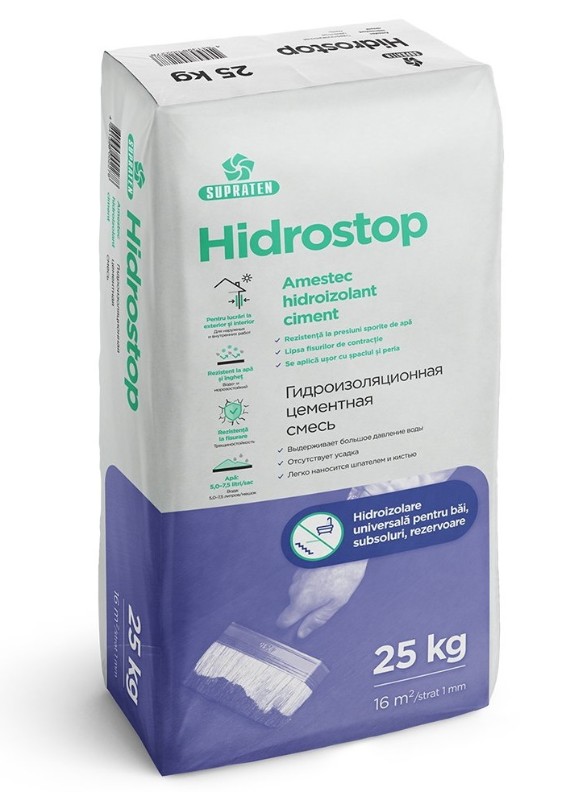HIDROSTOP — гидроизоляционная смесь на основе высококачественного цемента, пластификаторов, специальных наполнителей и аддитивов.