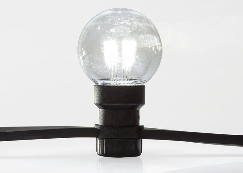 Гирлянда "LED Galaxy Bulb String" внешне схожа с гирляндой Belt-light. Отличается она тем, что уже готова к использованию, на шине через каждые 33 см уже смонтированы прозрачные лампочки диаметром 45 мм, в каждой из которой есть 6 диодов. Благодаря своей степени защиты гирлянда может быть использована как в помещении, так и на улице, даже в сильный мороз. Данная гирлянда имеет длину 10 м, на которой равномерно расположено 30 лампочек белого цвета свечения.