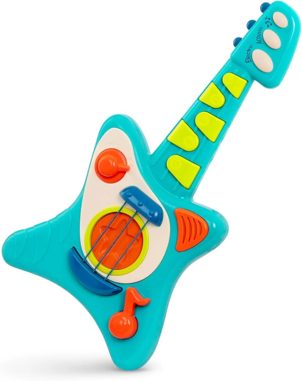 Эта красочная игрушечная гитара оснащена множеством забавных музыкальных функций для начинающих музыкантов.