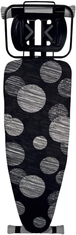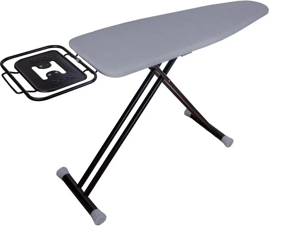 Конструкция доски прочная, с овальным профилем ножек и пластиковыми накладками, предотвращающими скольжение, а также оснащена специальной подставкой для утюга с термостойкими силиконовыми элементами. Моноблочная поверхность позволяет пару свободно проходить, а покрытие с электростатической порошковой окраской добавляет прочности и стильного внешнего вида.
