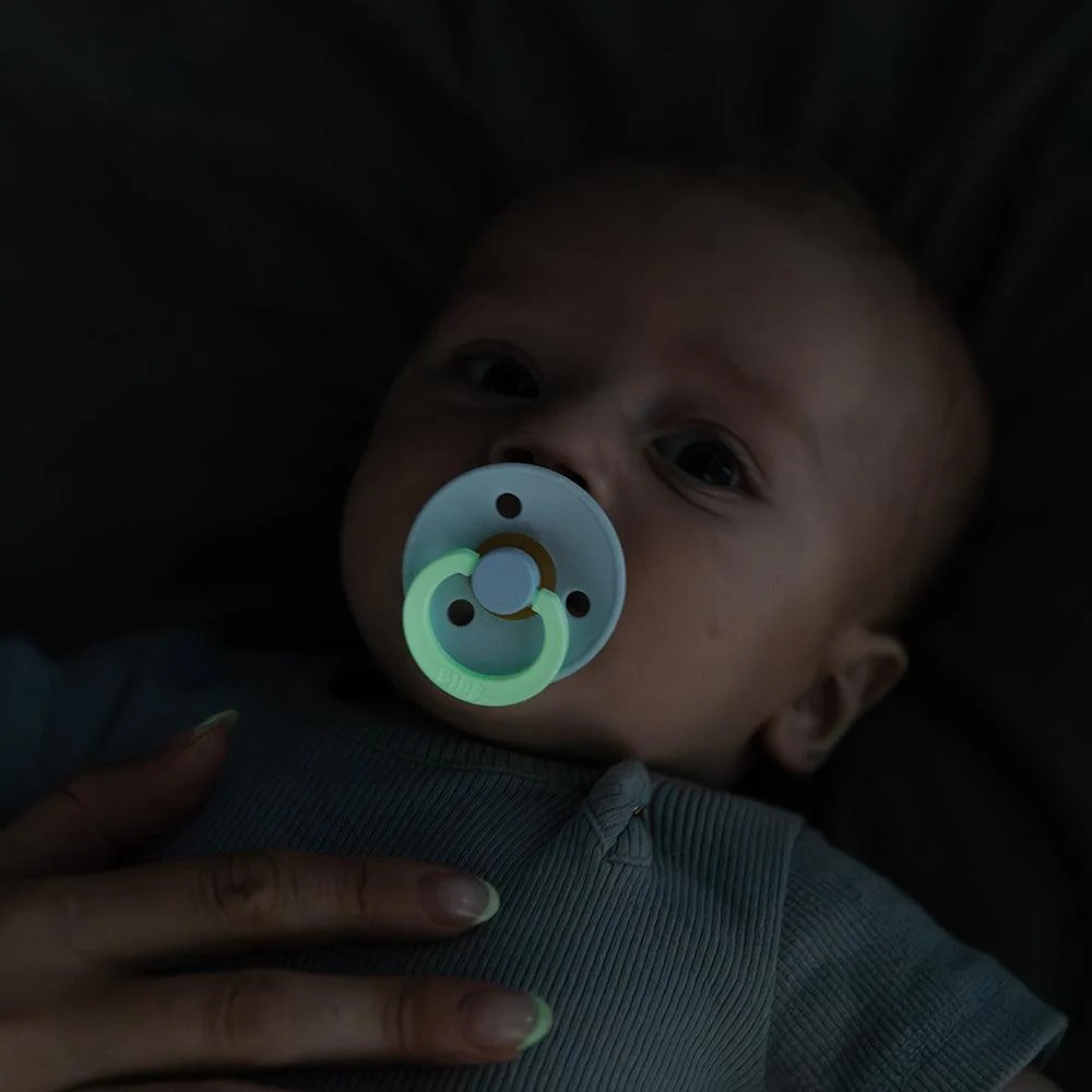 Пустышка Colour – это культовая пустышка BIBS, представленная на рынке с 1978 года. Колечко пустышки Colour Glow излучает мягкий свет и её легко найти в тёмной комнате. Достаточно двух минут под лампой, чтобы «зарядить» колечко. Свечение ему придают кристаллы люминофоров.