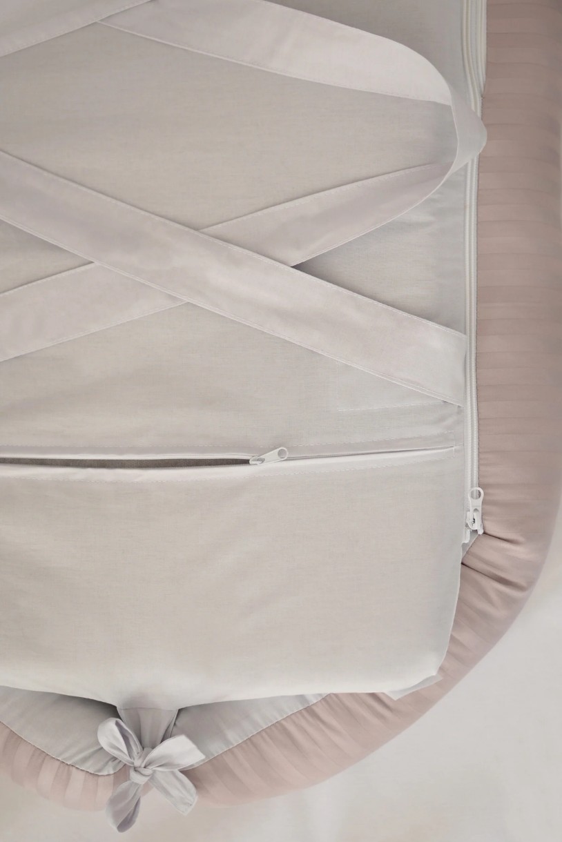 Матрасик можно использовать в коляске или люльке; развязав ленты, кокон трансформируется в пеленальный матрасик;