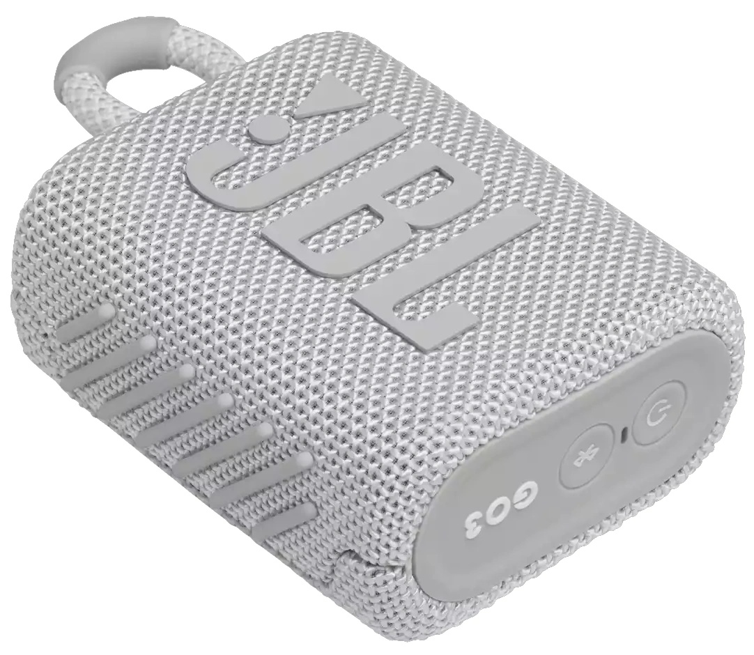 В ультракомпактном стильном корпусе JBL Go 3 удачно сочетаются разноцветная ткань и выразительные детали — колонка выглядит так же великолепно, как и звучит.