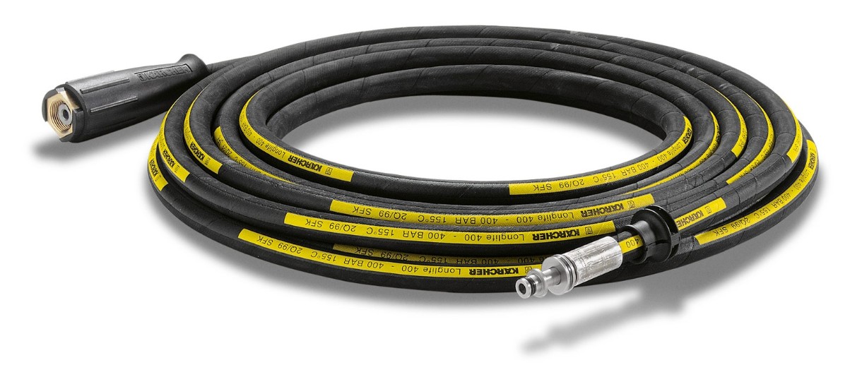 Предлагаемые Karcher долговечные шланги Longlife 400 с прочной резиновой оболочкой и двойным стальным армированием способны выдерживать давление до 400 бар. Они надежны, удовлетворяют высоким требованиям промышленной эксплуатации, имеют длительный срок службы.