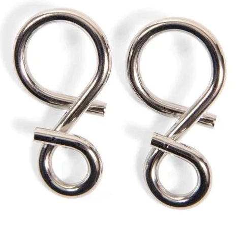 Две металлические детали под знаком бесконечности, которые можно прикреплять и отсоединять... Испытайте свои нейроны и получайте удовольствие! Решение находится в коробке.