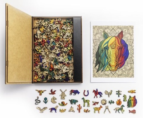 Важно знать о наших пазлах то, что они изготовлены из натурального дерева – процесс изготовления пазлов доставляет удовольствие. Позвольте себе расслабиться и погрузиться в красочный мир головоломок. Соберите лошадь, используя заводные фигурки в виде животных, растений и загадочных символов. А если вы не можете собрать образ самостоятельно, позовите на помощь друзей или близких!