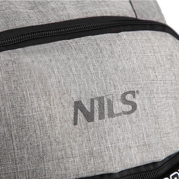 Мягкая сетчатая спинка оснащена системой NILS Vent, которая обеспечивает циркуляцию воздуха между рюкзаком и спиной, тем самым уменьшая потоотделение. Удобные мягкие лямки регулируются по длине. На верхней стороне находим петлю для ношения рюкзака в руке или для подвешивания.