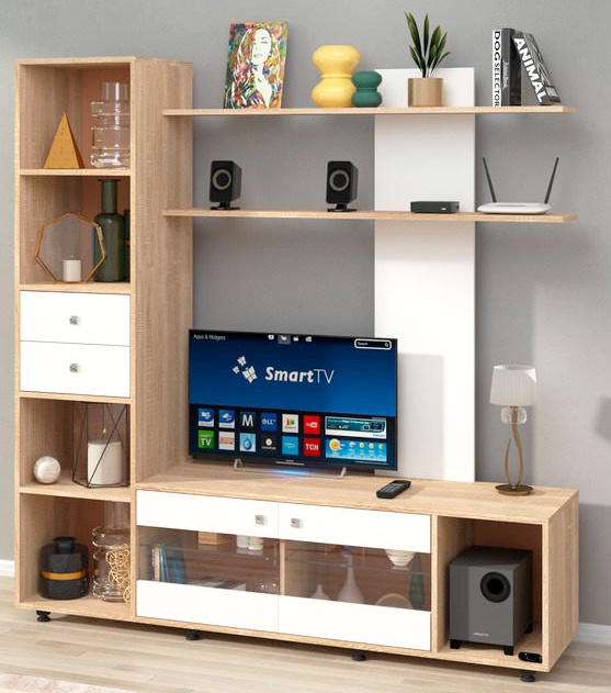 Гостиная Пехотин Мальта Дуб Сонома/Белый
