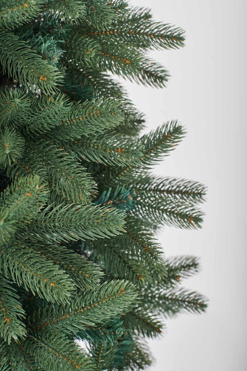 Коллекция Grand Elite – это зеленые ели природной формы с увеличенным диаметром. Количество веток повышено, что не создает просветы, ствол не виден, декор новогодними шарами удобен и прост. Отличительной особенностью этой Ёлки являются литые веточки 3 D максимально повторяющие натуральные иголки в комбинации с ветками из ПВХ пленки наивысшей категории качества А+. Материал не поддерживает горение и не излучает неприятных запахов. Цвет веток максимально повторяет цвет елей в лесах центральной полосы России. Сердцевина веток прокрашена в коричневый цвет как в природе. Ствол состоит из трех и более частей. Ветки прикреплены к стволу и легко раскрываются по принципу зонтика.