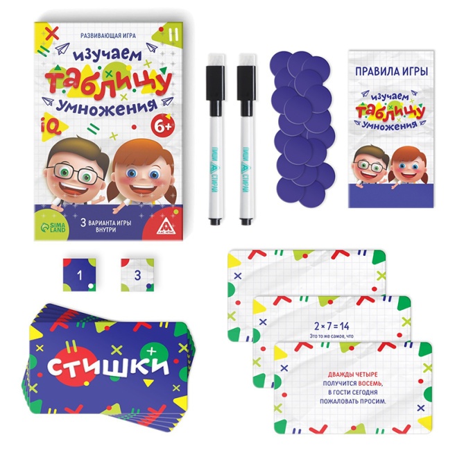 2 вариант поможет ребёнку узнать, что умножение — это многократное сложение чисел. Для этого подготовлены специальные карточки с весёлыми стишками.