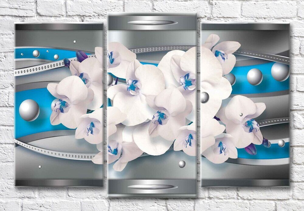 Картина Magic Color Orchids and spheres on a Gray background with Blue stripes (3565203)