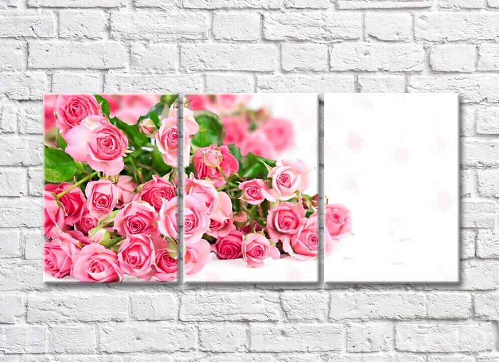 Картина Gallerix Pink roses and green leaves on a white background (500586)