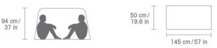 Выполнен из прочного легкого нейлона ripstop, великолепно защищающего от ветра и влаги, предоставляя надежную защиту во время ненастья. Роль поддерживающего каркаса выполняют сами путешественники, рассаживаясь по углам приюта. Так же для этой цели можно использовать большие рюкзаки.