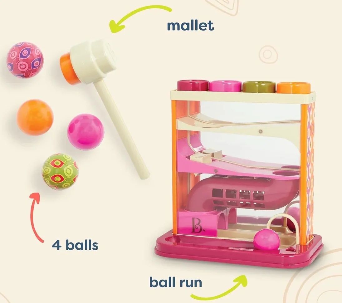 Ударяя по шарам и наблюдая за их траекторией, дети изучают концепцию причины и следствия в увлекательной игровой форме. Размеры молотка и шаров идеально подходят для маленьких ручек, что делает игрушку удобной и безопасной в использовании.