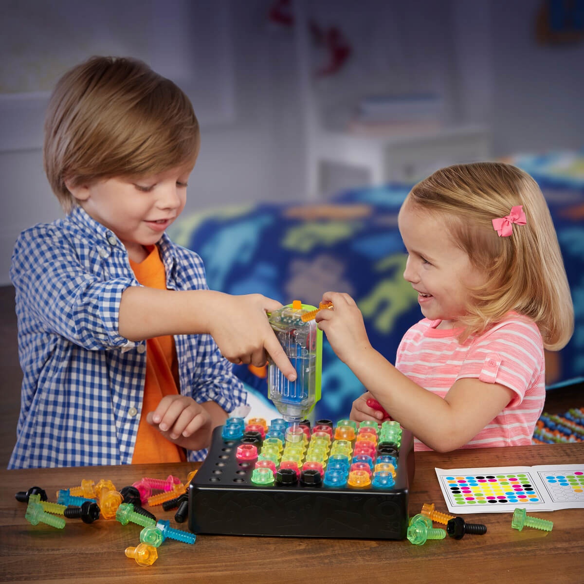 Учебный игровой набор "Круты и мира" от Educational Insights - отличный подарок для креативного ребенка, представляющий собой пластиковую панель, в которую с помощью полупрозрачного электродрели вкручиваются разноцветные шурупы. Как только шуруп будет закручен до конца, он начинает светиться. Малышам особенно интересно будет играть с набором в темноте!