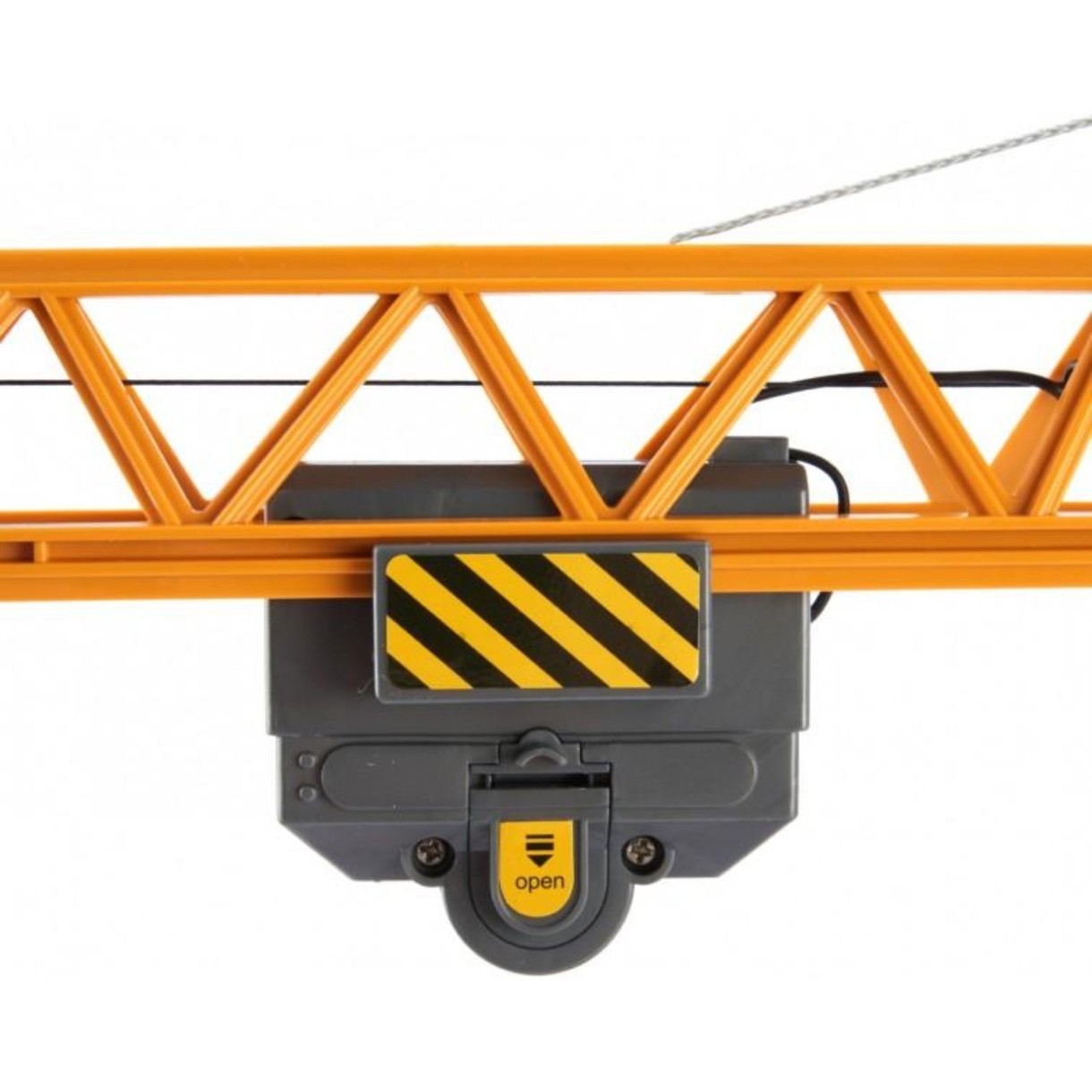 Высота крана 100 см. Несмотря на то, что модель выполнена в масштабе 1:18, кран способен выполнять весь спектр строительных работ, как настоящий. Башня крана вращается на 360 градусов. С помощью удобного пульта радиоуправления можно перемещать подъемный блок вверх и вниз, вперед и назад. Также в игровой набор входит груз, который кран может поднимать и опускать.