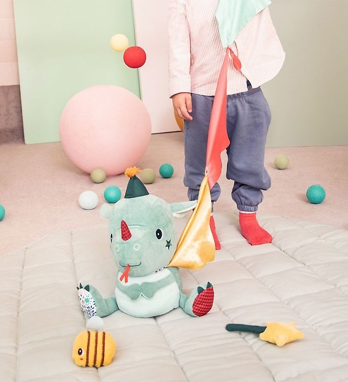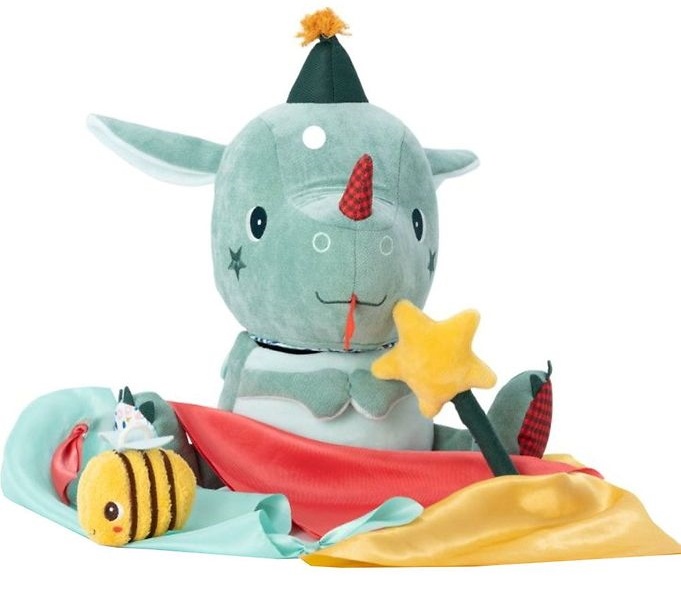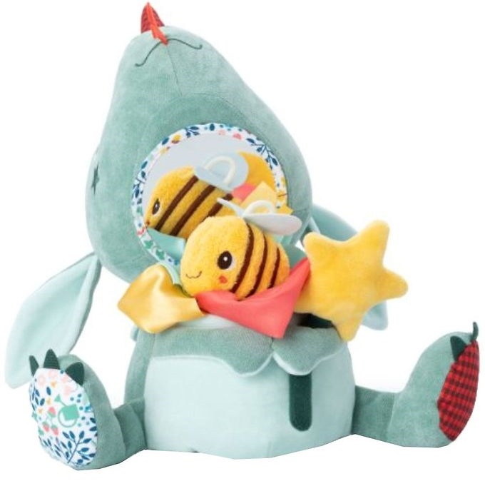 Дракончик-игрушка Lilliputiens может активно двигать головой, открывая полость в теле, где есть место для входящей в комплект цепочки для шарфа, мягкой игрушечной пчёлки с эффектом потрескивания и волшебной палочки с эффектом шуршания, которую можно поднять из игрушки. Голова имеет потрескивающие уши и зеркало внизу. Активный дракончик стимулирует моторику ребенка, воображение, эмпатию и слух.