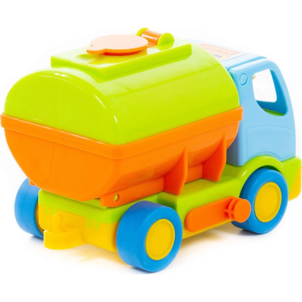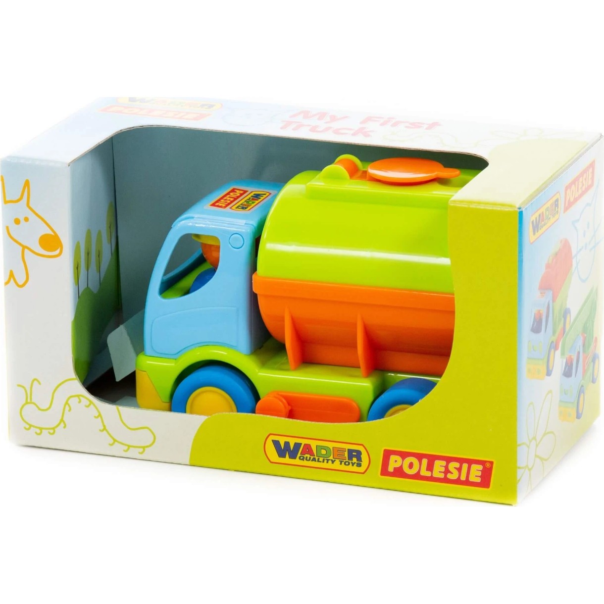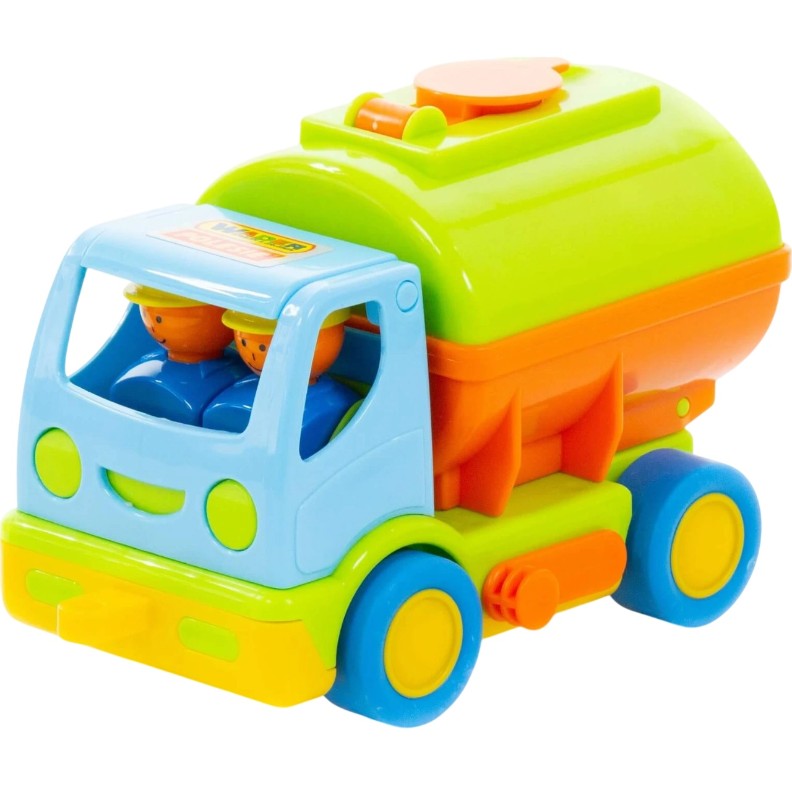 Серия «Мой первый грузовик» от фабрики «Полесье» идеально подходит для того, чтобы стать первой машинкой малыша. Автомобиль с цистерной компактный по размеру, создан из качественного пластика. Цистерна подымается, если изменить положение рычажка. Цистерна имеет отверстие, куда можно заливать воду. Поэтому игра с автомобилем интересная и познавательная. В кабине помещаются фигурки двух человечков, с которыми можно разыгрывать сценарии игры. Колёса автомобиля прорезинены, что обеспечивает минимальный уровень шума при катании игрушки.