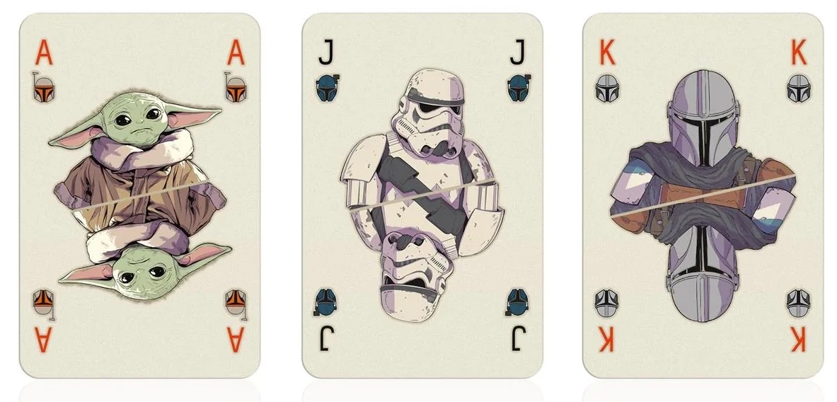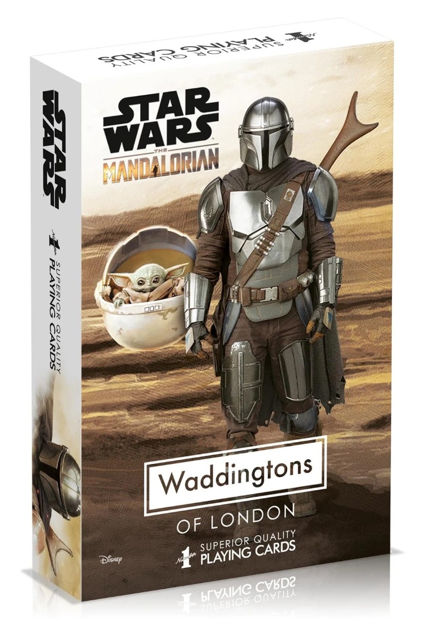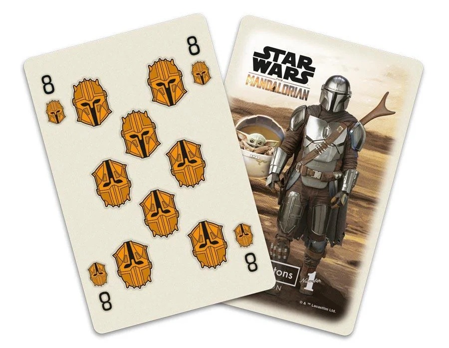 Добавьте стиля и мощи в свои карточные вечера с этой официальной колодой карт WADDINGTONS No. 1 по мотивам сериала The Mandalorian. Классические масти заменены уникальными шлемами из вселенной Star Wars, а карты украшены изображениями таких персонажей, как Кара Дюн, IG-11, Гриф Карга, Малыш (Грогу) и сам Мандалорец.
