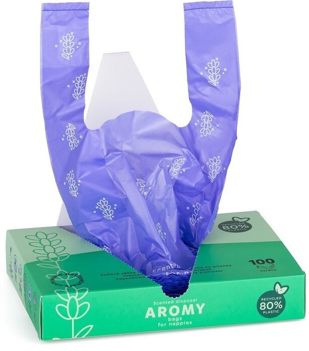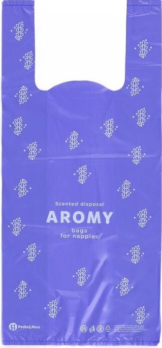 Ароматизированные пакеты Petite&Mars Aromy предназначены для гигиеничной утилизации использованных подгузников и помогают нейтрализовать неприятные запахи. В коробке находятся 100 пакетов с нежным ароматом лаванды, который сохраняет свежесть и маскирует запахи. Пакеты достаточно вместительные, чтобы поместить несколько подгузников, и оснащены длинными ручками для быстрой и удобной фиксации. Их можно использовать также как маленькие пакеты для мусора в поездках или для мокрой одежды и салфеток. Материал прочный, толщина пленки 12 μm, размер каждого пакета- 18×38 см. До 80 % материала изготовлено из переработанного сырья, что делает их безопасными для окружающей среды.