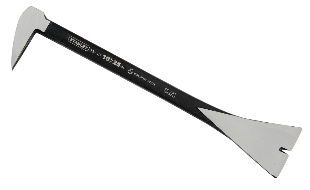 Широкий кованый гвоздодер 25 см Stanley 0-55-117 пригодится на строительно-ремонтной площадке для демонтажа декоративных элементов, крепежа, например, гвоздей. Корпус изготовлен из кованной, высокоуглеродистой стали. Двухсторонняя конструкция с удобной широкой частью, которая может быть использована как рычаг. Рабочие части полированы и имеют фаски.