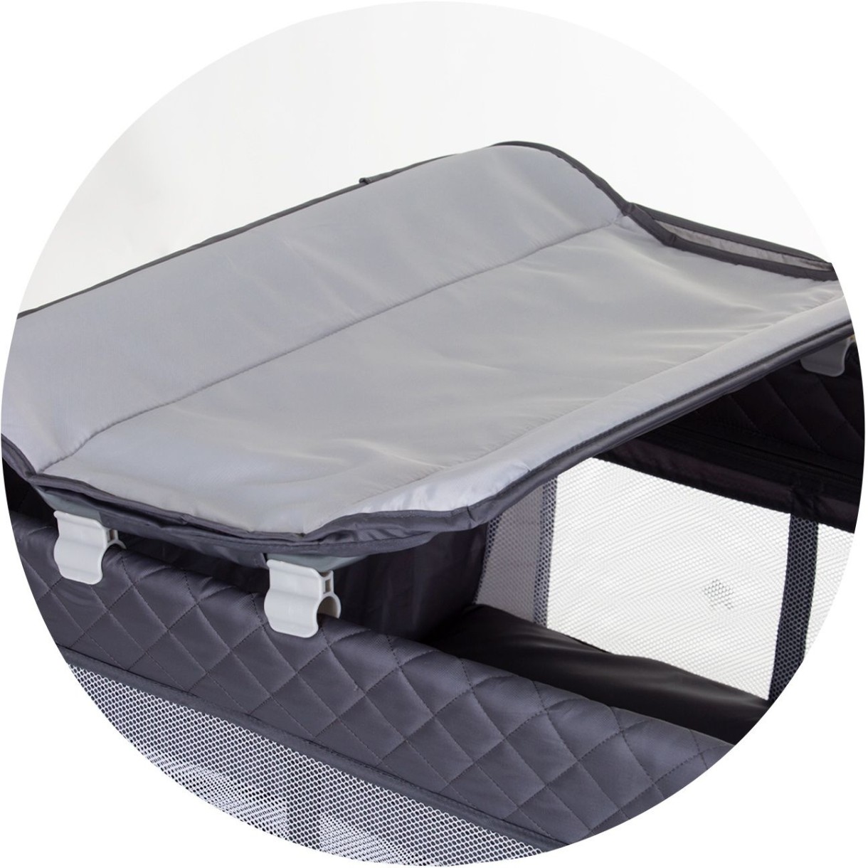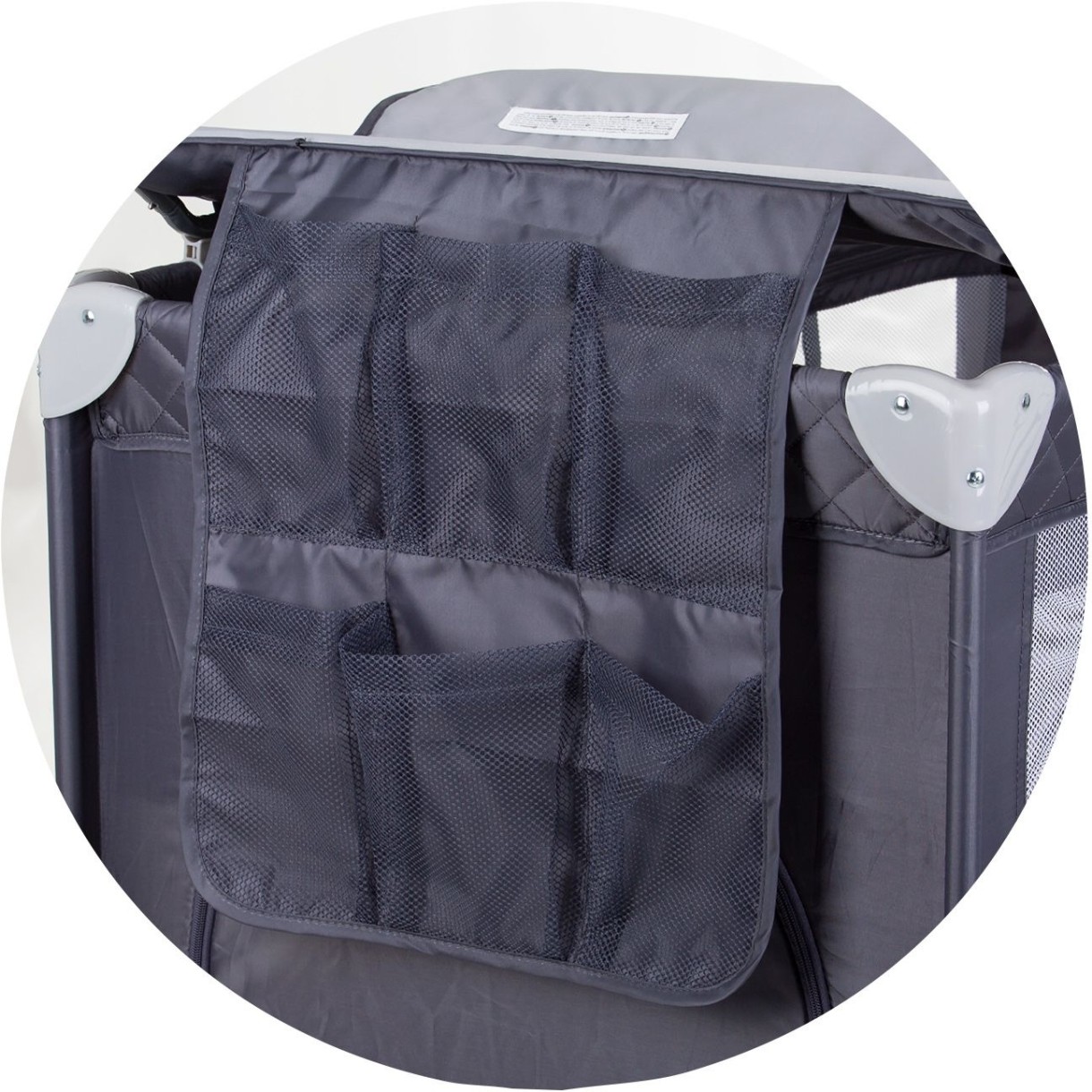 Второй уровень с мягкой подушечкой – подходит для новорожденных. Роскошный пеленальный столик с органайзером для аксессуаров. Карман для аксессуаров и аксессуаров на одной короткой стороне корзины.