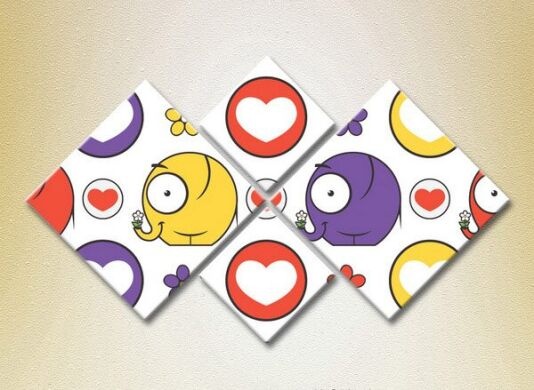 Картина Rainbow Polyptych Elephants hearts and flowers 02 (2230607)
