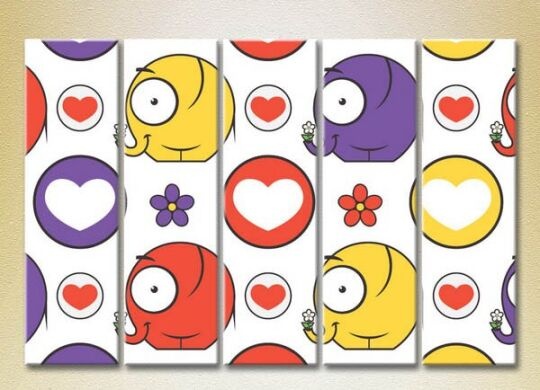 Картина Rainbow Polyptych Elephants hearts and flowers 03 (2231817)