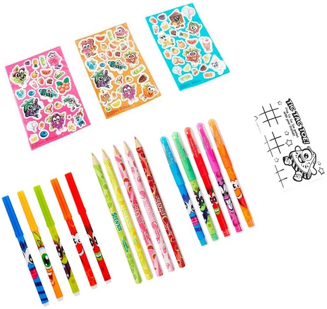 Дополнительные спецификации5 цветных карандашей, 5 маркеров, 5 гелевых ручек, 4 листа с наклейками, разрисовка