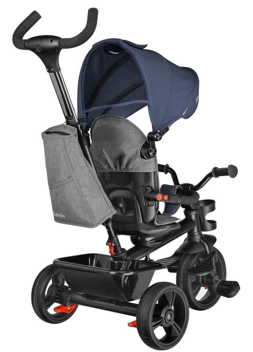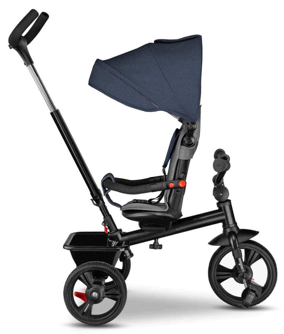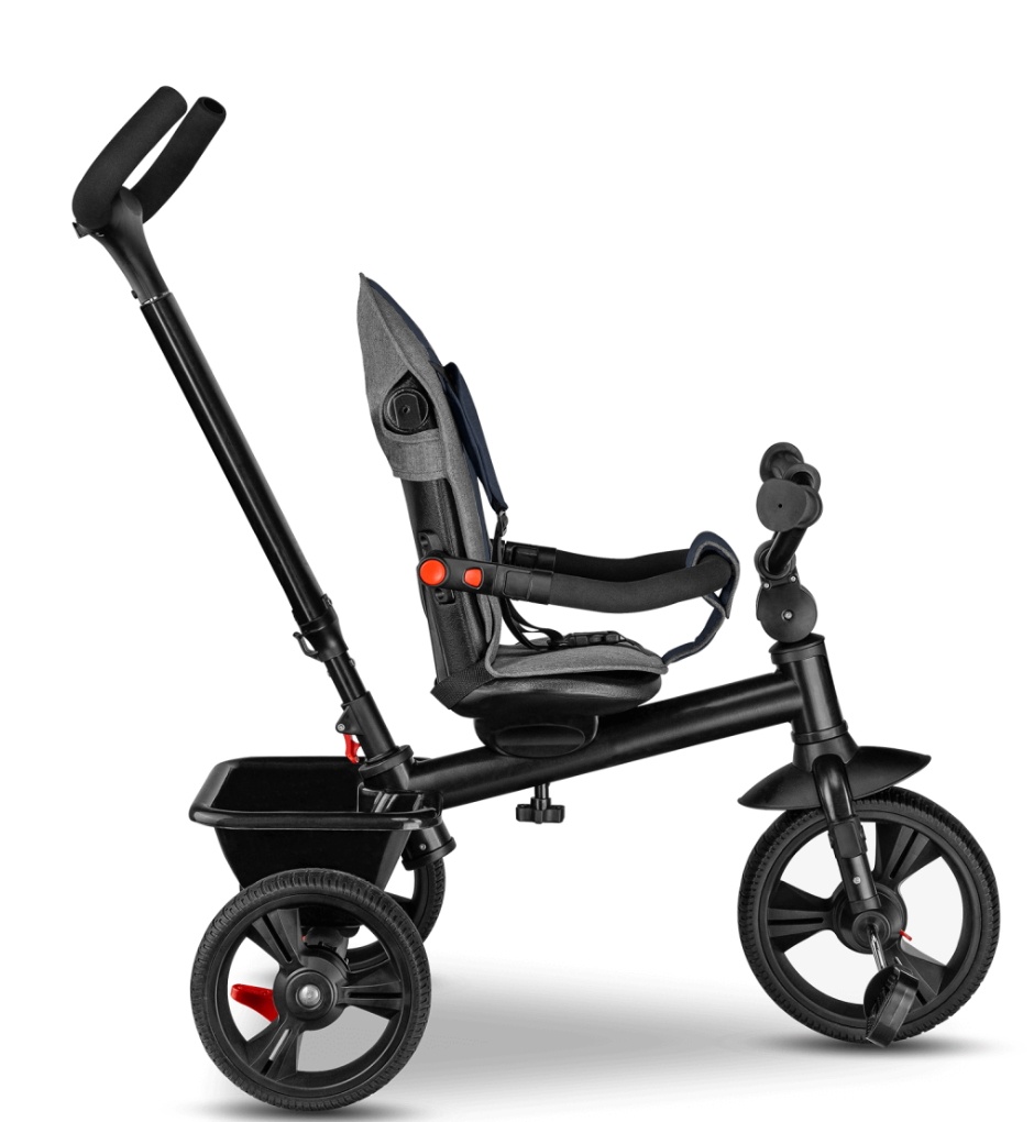 Телескопическая ручка для родителя. Защитный поручень и ремень безопасности. Задний стоппер на колесах. Просторная корзина для игрушек. Сумка для мамы, подстаканник. Съемная родительская ручка и козырек.