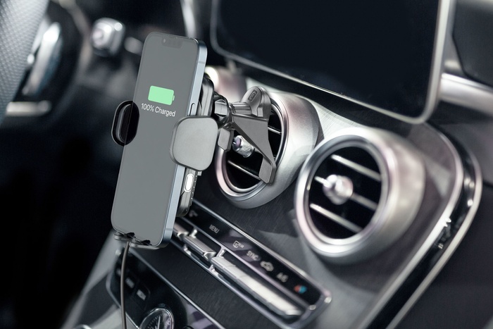 HUG AIR - это электронный автомобильный держатель для смартфона с функцией беспроводной зарядки Qi. Технология Wideactive™ 1 с одновитковой электроникой обеспечивает эффективную и непрерывную беспроводную зарядку без перегрева смартфона. Особенностью изделия являются встроенные датчики, которые позволяют держателю автоматически открываться и закрываться, облегчая процесс установки и извлечения телефона. В комплект поставки входят две различные системы крепления: присоска для легкого прикрепления держателя к лобовому стеклу или приборной панели и инновационная застежка-крючок, которая может крепиться как к стандартным, так и к круглым вентиляционным решеткам.