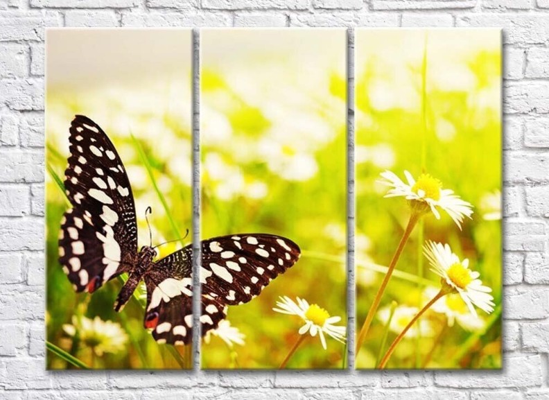 Картина Rainbow Black butterfly on the background of a chamomile field (500832)