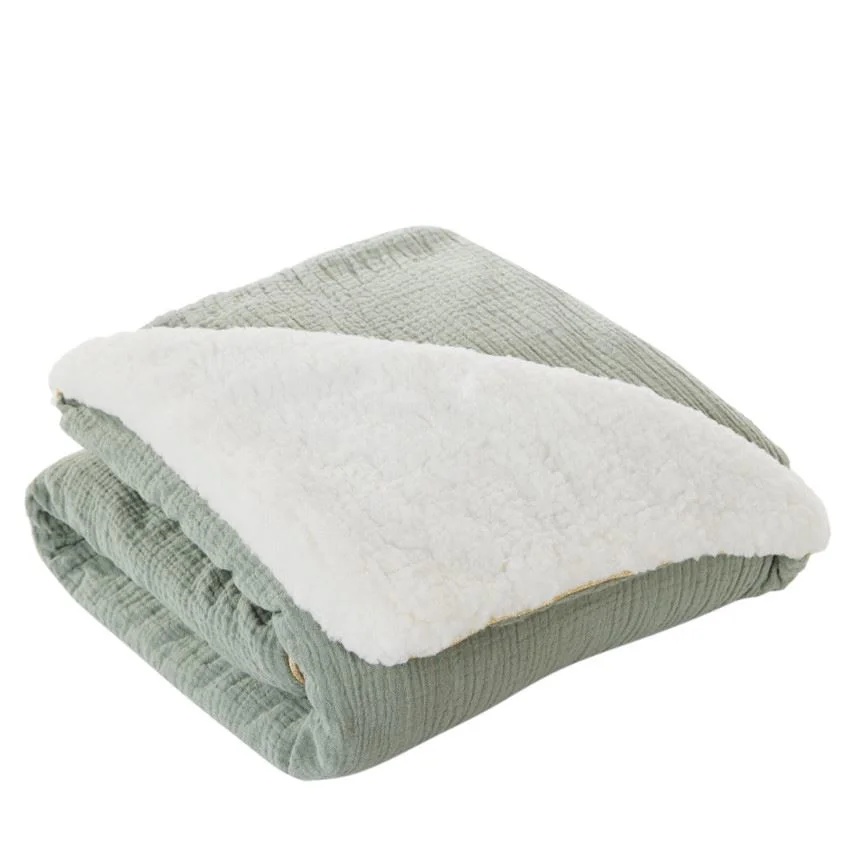 Окутайте малыша нежными моментами с этим двусторонним одеялом, созданным для тепла и комфорта. Исключительно мягкое, оно идеально подойдёт для прогулок, игр или ежедневного уюта. Благодаря двустороннему дизайну сочетает нежный слой из газового хлопка и тёплую сторону из шерпы.