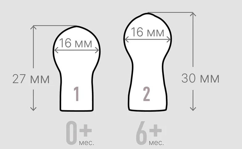 Круглая соска из натурального каучука больше всего напоминает по форме и размеру мягкий сосок матери и обеспечивает такое же положение языка и технику сосания как при грудном вскармливании.