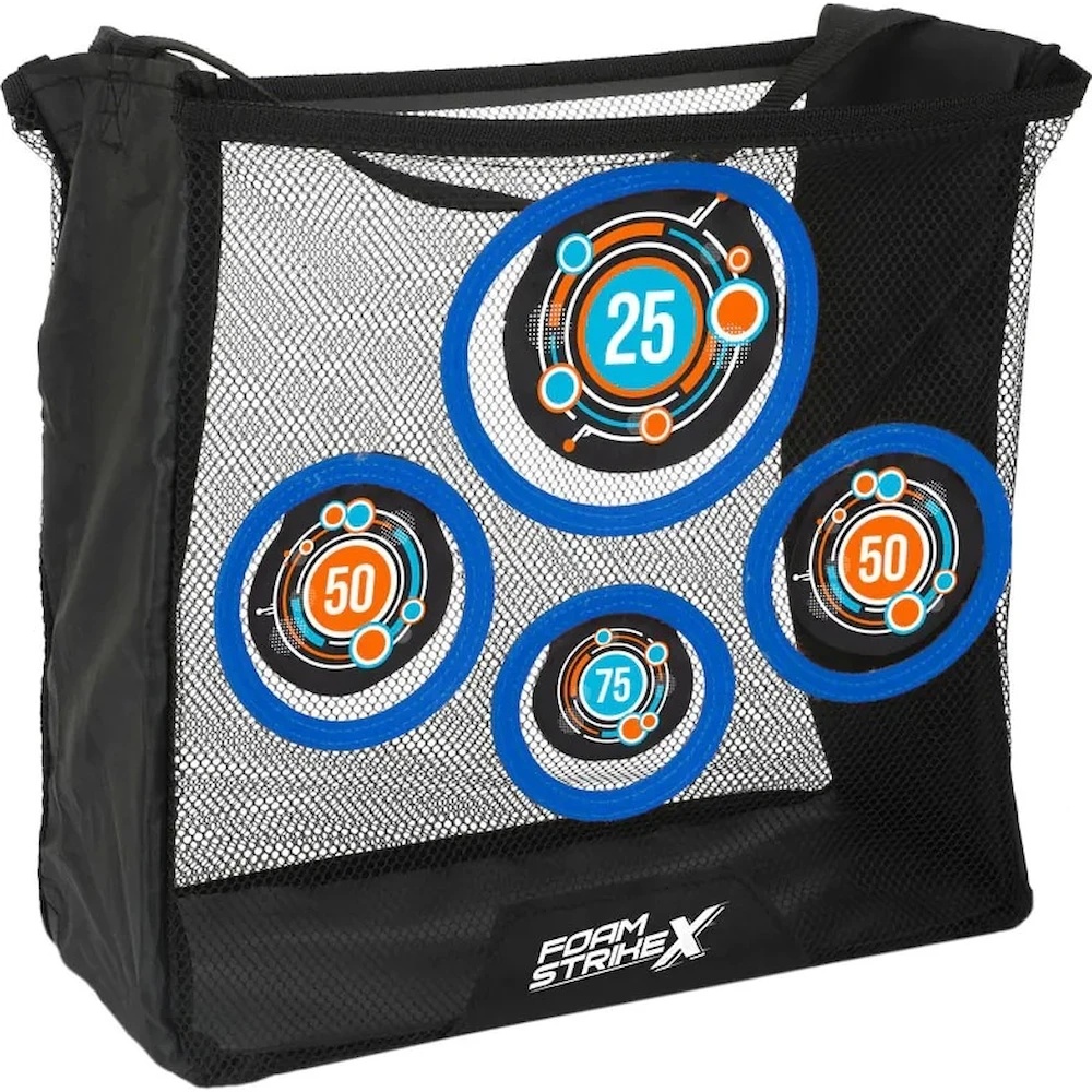 Сумка изготовлена из прочного, износостойкого материала, который защищает мишени от повреждений при транспортировке и хранении. Складной механизм мишеней позволяет экономить место, а удобные ручки облегчают перенос даже полной сумки.