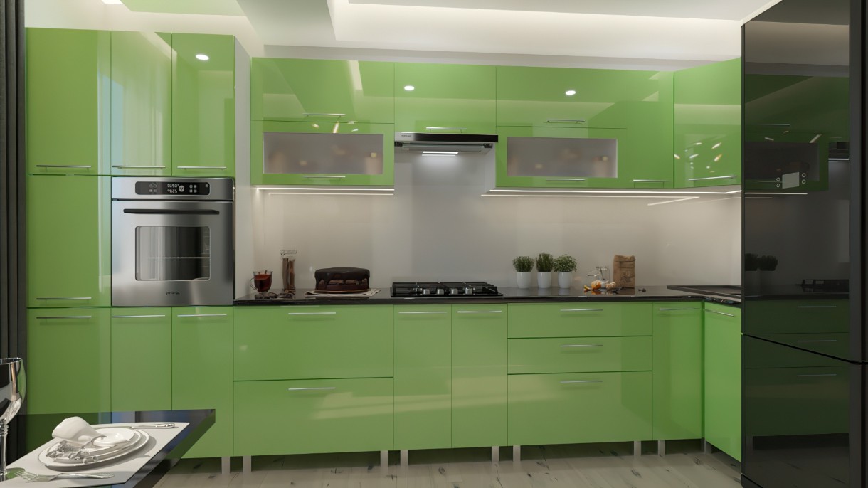 Кухонный гарнитур Bafimob Corner (High Gloss) 4.1x0.9m Eco +ball closer Green