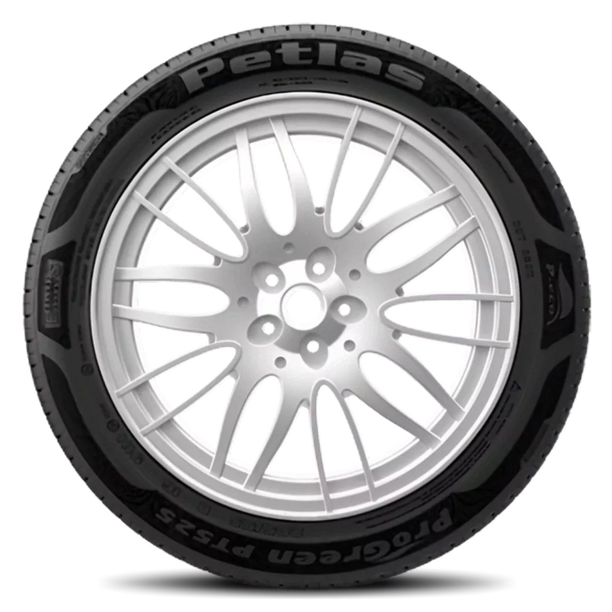 Летние шины довольно часто сталкиваются с проблемой аквапланирования. Для её устранения инженеры продумали вместительный аквадренаж в летней Петлас Прогрин ПТ525, состоящий из трёх окружных каналов и сети продольно-поперечных канавок. Низко посаженые бороздки легко справляются с водоотводом, а в более сложных условиях с удалением грязи из пятна контакта. Авторезина Petlas Progreen PT525 сделана с аэродинамическими обтекаемыми формами, покатым спортивным профилем и широким контактным пятном. Этим удалось добиться равномерного распределения нагрузки для минимизации износа и повреждений каркаса. В сочетании с низким сопротивлением качению всё способствует экономному расходу топлива (на 4-7% меньше чем у других аналогичных моделей) и уменьшенному выбросу вредных веществ в окружающую среду. Автошины Петлас Прогрин ПТ525 относятся к «зелёной» линейки, о чём свидетельствует приставка «green».