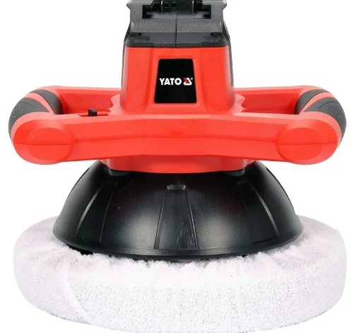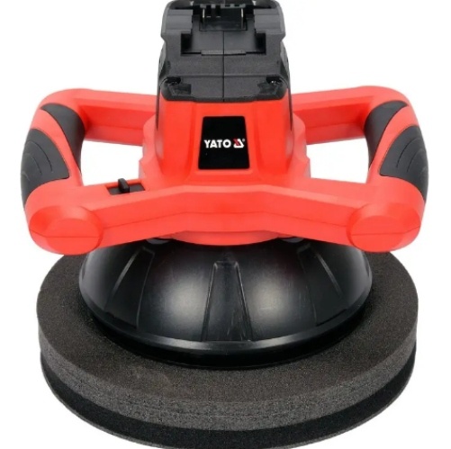 Полировальная машина 18 В (двойного действия) YATO YT-82922, предназначенная для полировки и обработки воском больших поверхностей: масок, крыш, крыльев легковых и грузовых автомобилей, лодочных палуб, полов и т. д. Орбитальное движение головки предотвращает образование голограмм и ускоряет распространение полировальная паста и воск.